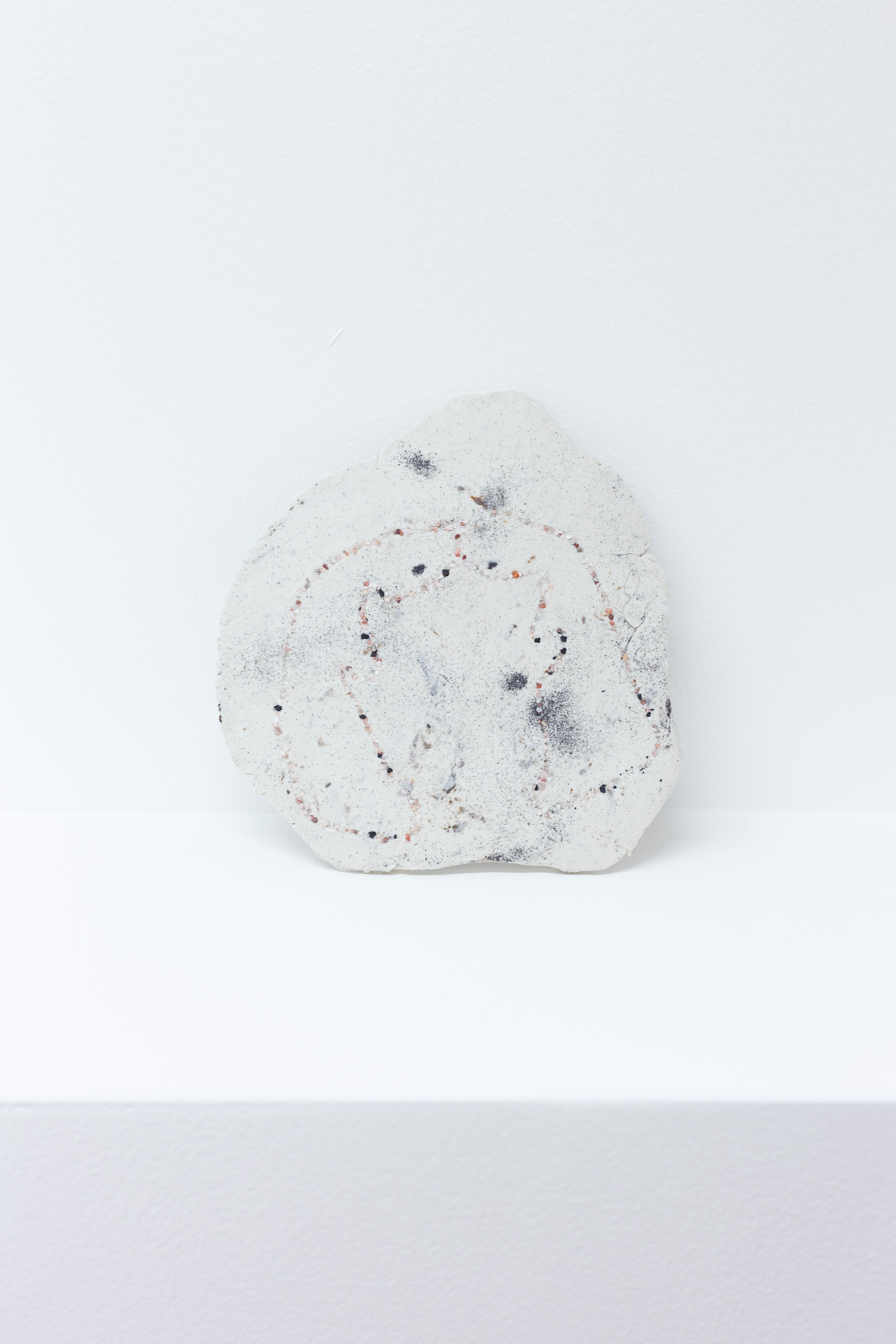 Laurence Veri, Untitled, 2020, porcelain, ilmenite, sand, 6 3/4” x 6 1/2” x 1/4”