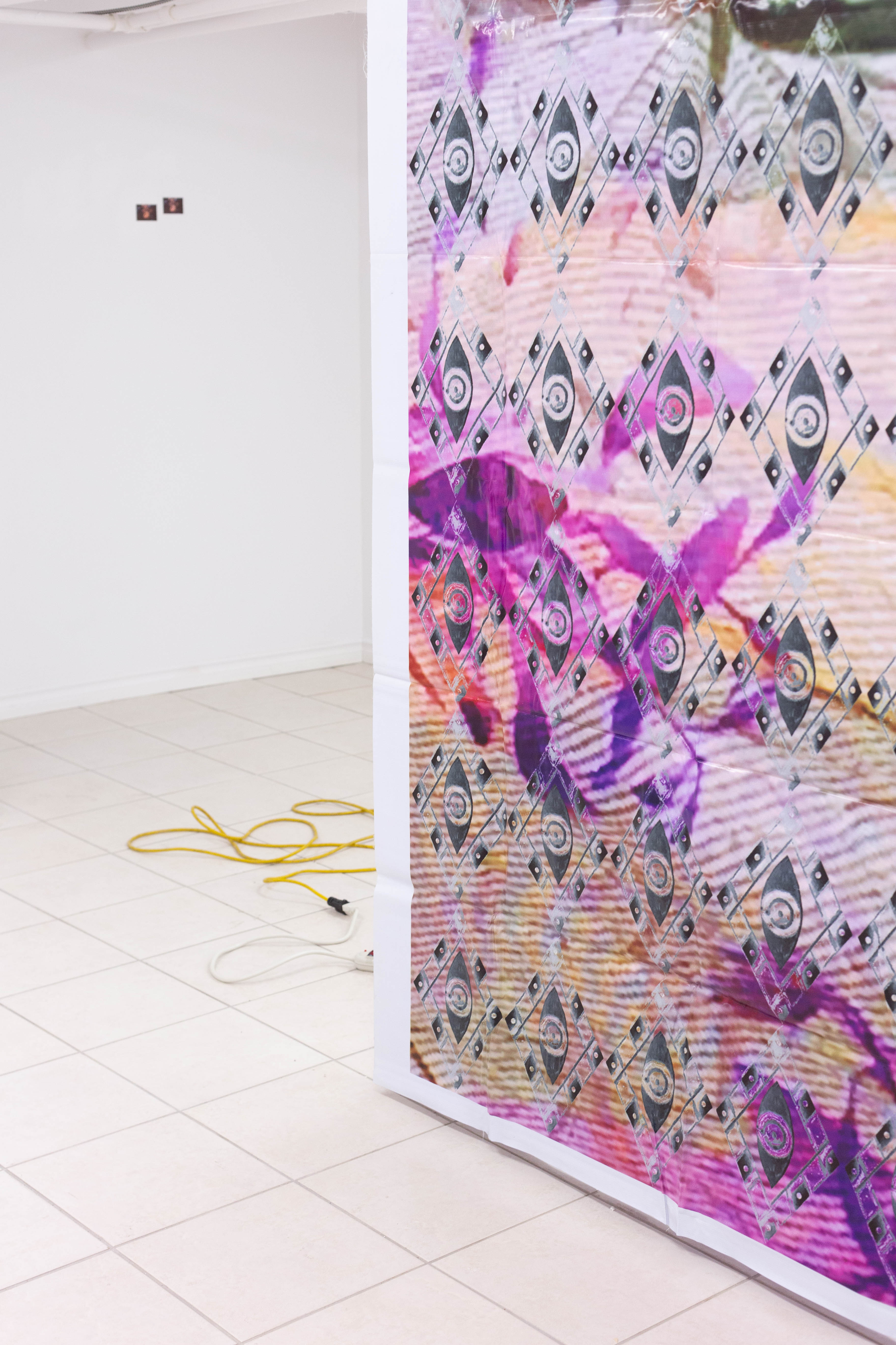 Colin Miner, Untitled (bloom), 2021, tarp print, 122 1/2 x 160 1/2”
