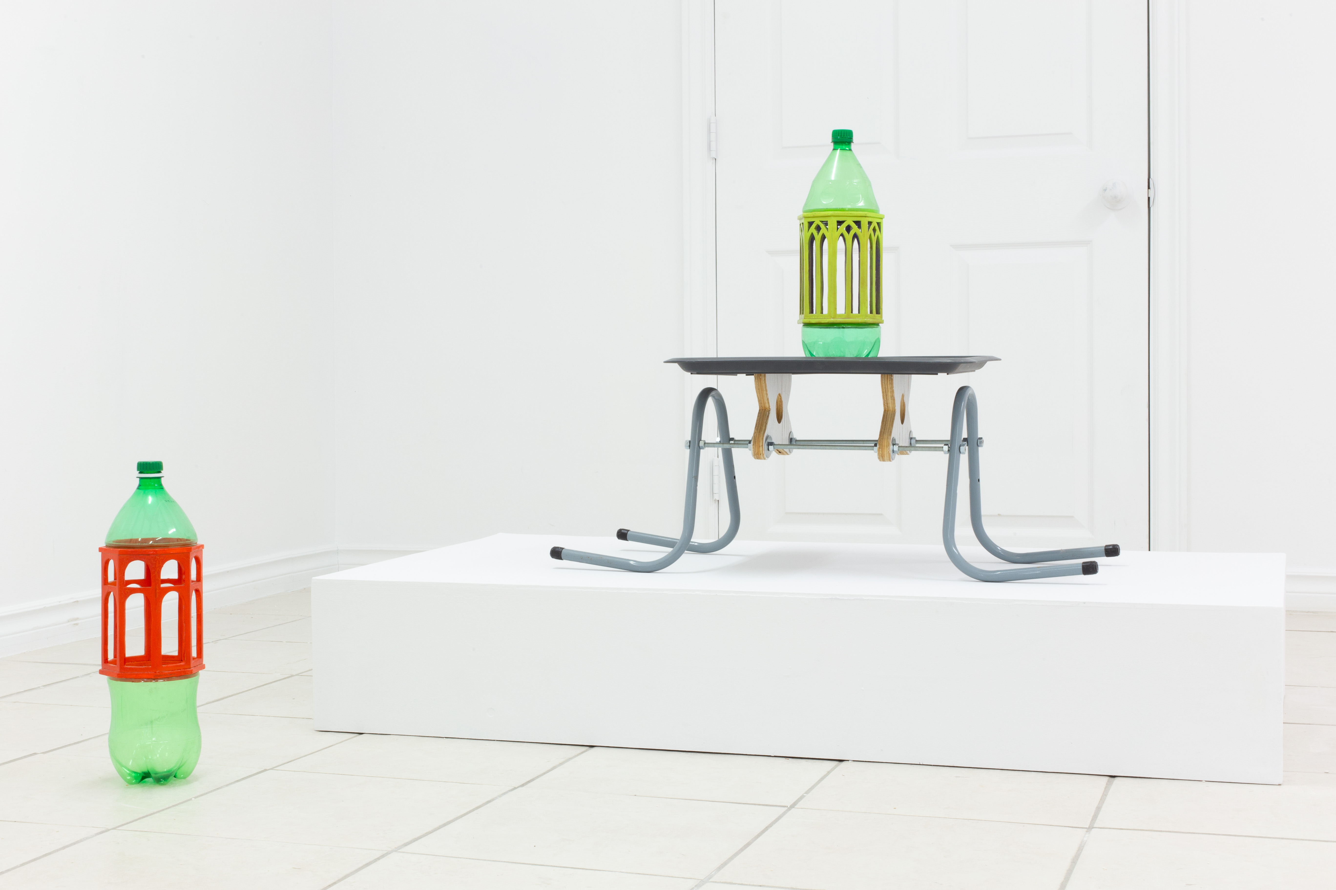 Ryland Fortie, Bottle Module (Temple 1 & 2), 2020, soda bottles, plywood, aerosol paint, and epoxy resin, dimensions variable