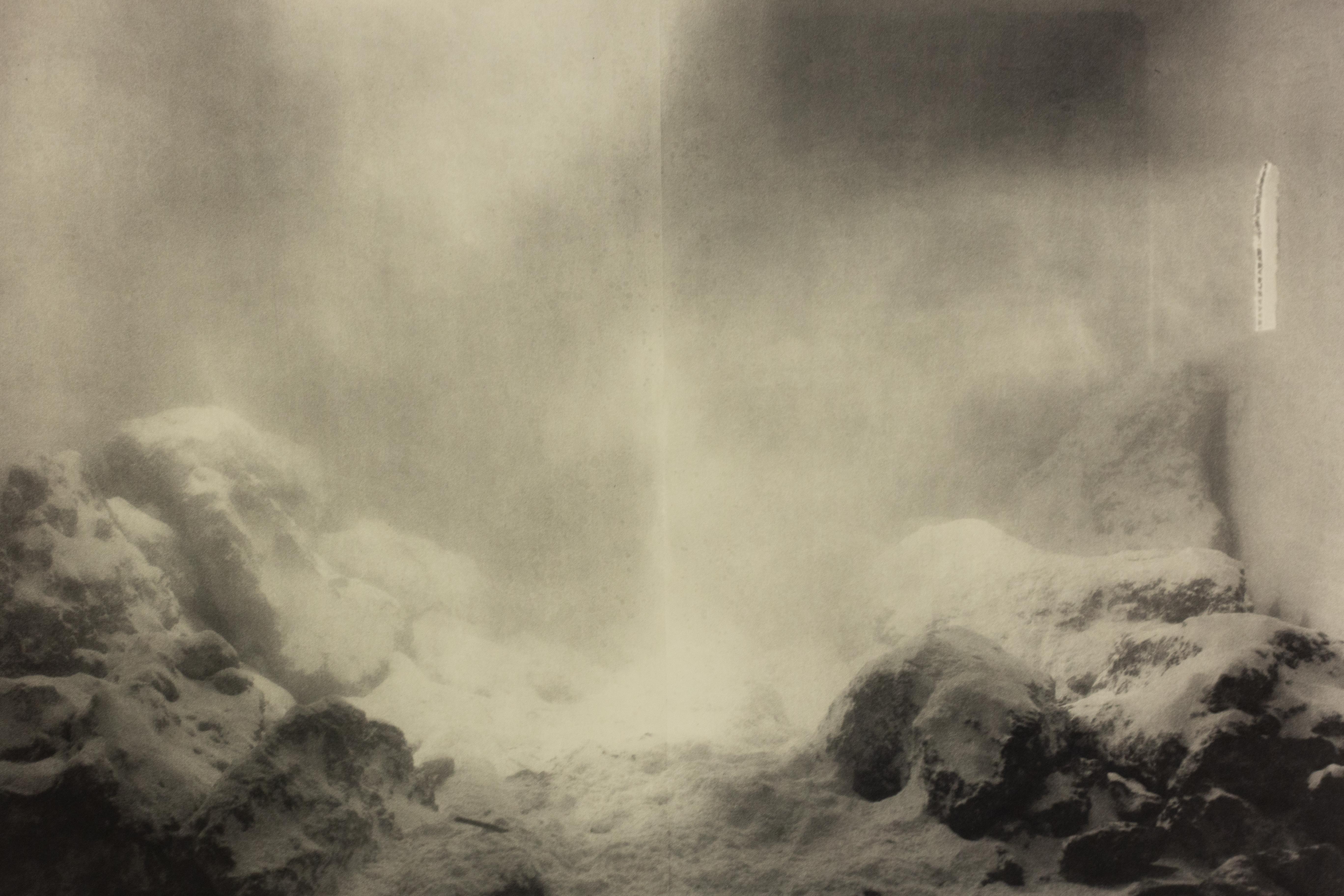Angela Snieder, Diorama 1, 2017, Photopolymer print on Japanese paper, chine-collé on rag paper, 22” x 29” (image), 30” x 40” (sheet)