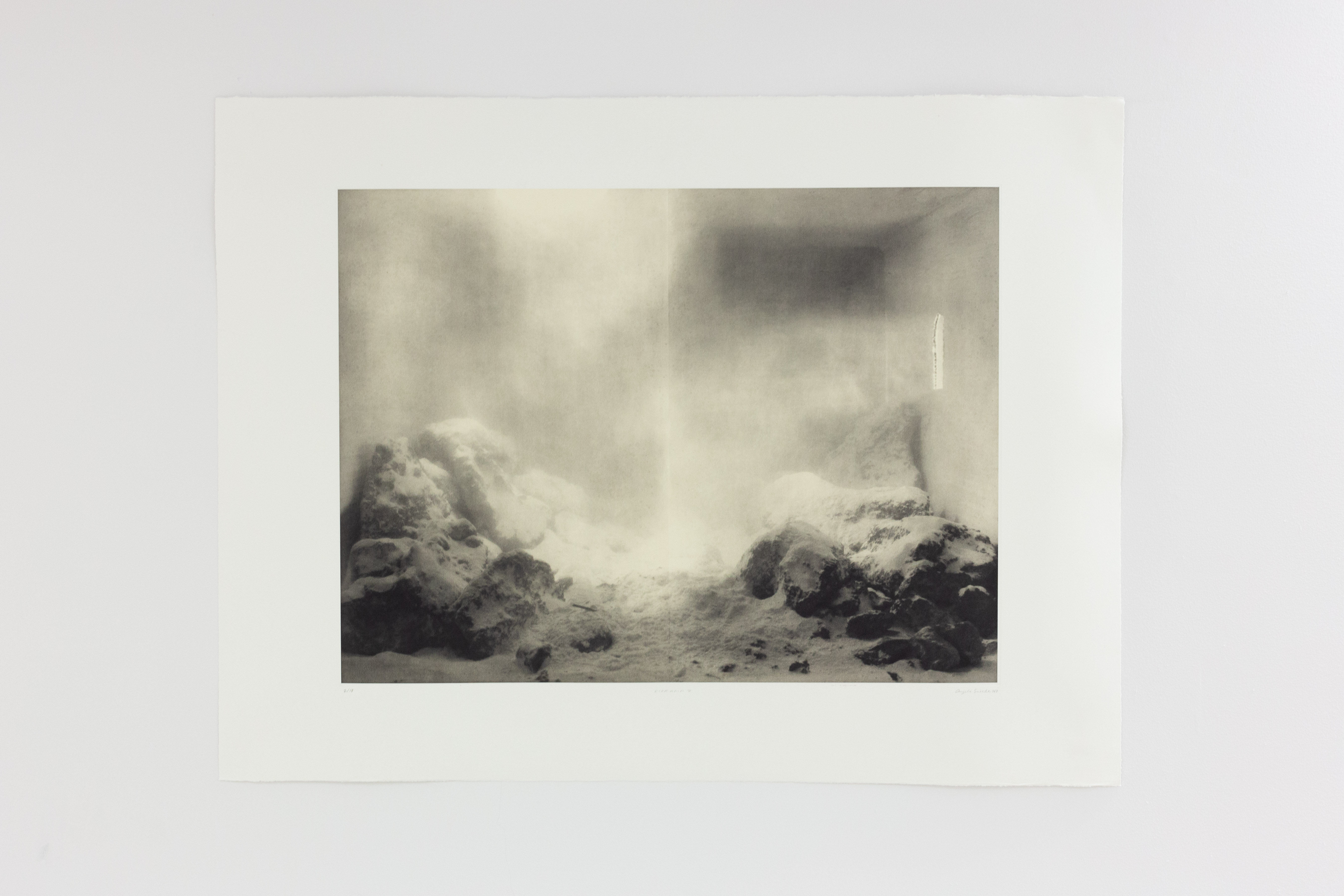 Angela Snieder, Diorama 5, 2017, Photopolymer print on Japanese paper, chine-collé on rag paper, 22” x 29” (image), 30” x 40” (sheet)