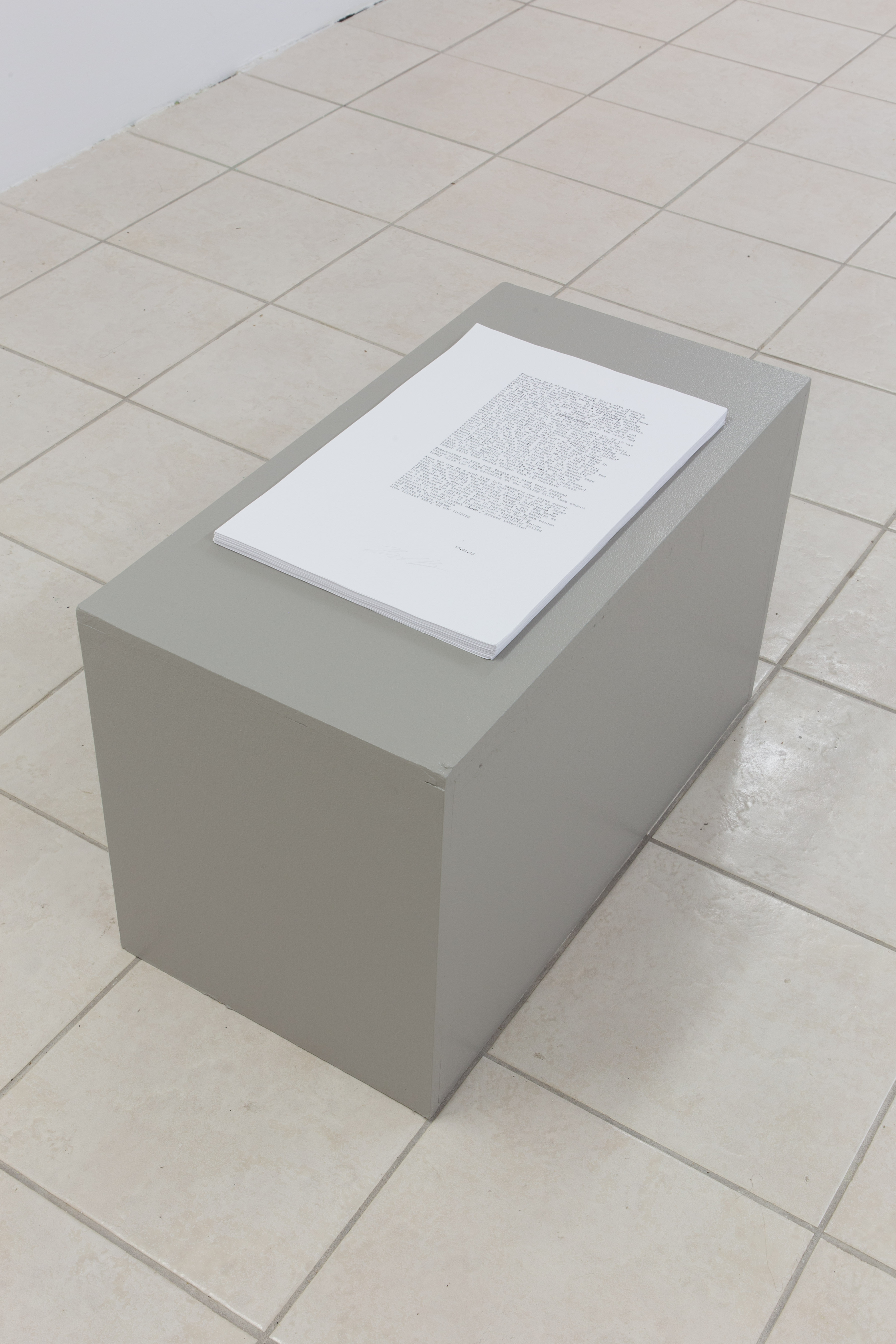 Alvin Luong, Ration Eater, acrylic paint, concrete cinder blocks, MDF boards, paper pulp, plant mater, plastic bags, plastic tarp, printed banners, water, salt, steel carabiners, steel chains, steel eyelet hooks, dimensions variable.