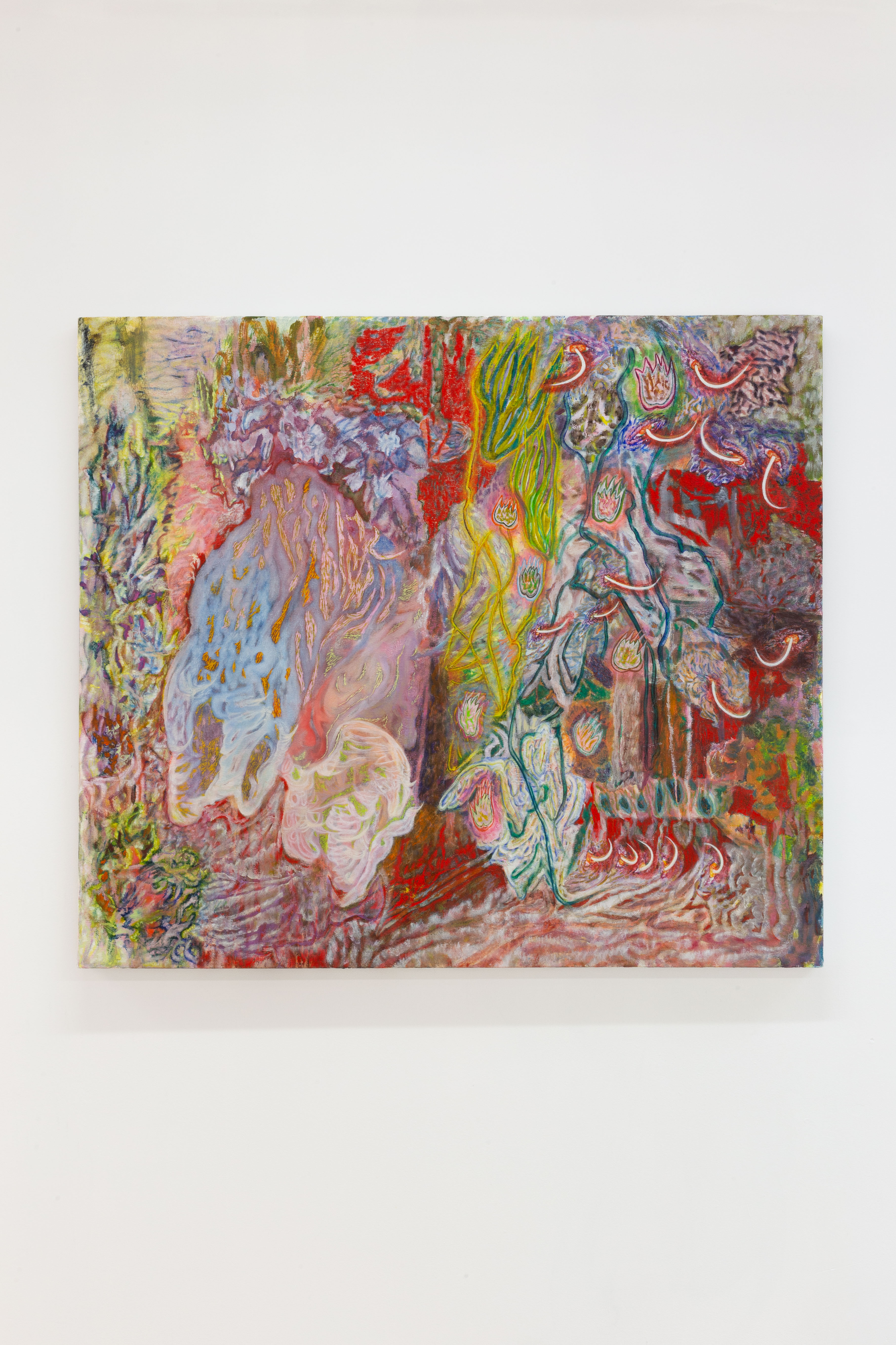 Tiziana is the free spirit I aspire to be. She works for no one but the fullest, wildest world. Images and words become greasy and firm in the mouths and eyes she touches. Tiziana’s pace and practice surprise at every turn, even in her email interactions about this exhibition (It turns out we both like lentils and almost shared a first name.) Tiziana is the pure form of the show’s intention: to expand painting, to expand everything she touches unapologetically. Her practice is mouse-shaped balloon that keeps stretching to fill an endless mouse tunnel.
