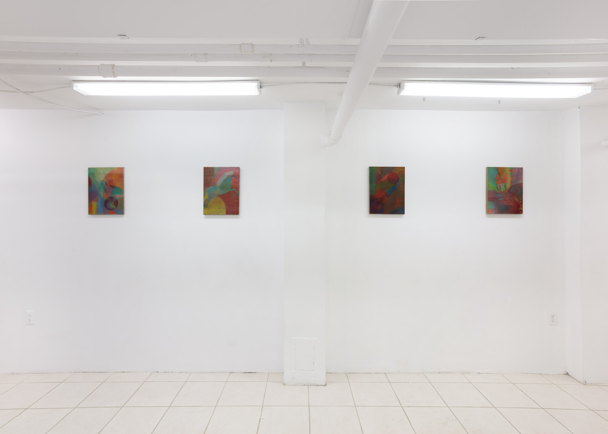 Elmizadeh’s signature atmospheric style layers translucencies of bleeding colour and traces returning and doubling motifs. Her four-part Passing through the mountains like a drop of Balsam, seeks “moments of dissolution” in the artist’s own words: where form slips through the fingers, seeping, leaking and crossing boundaries of matter and light.